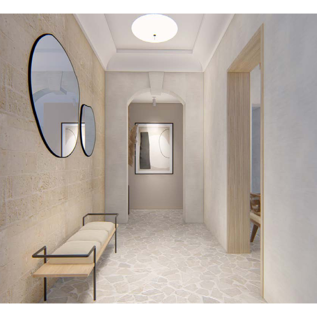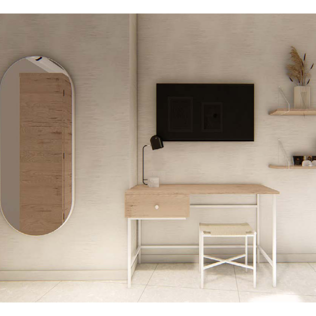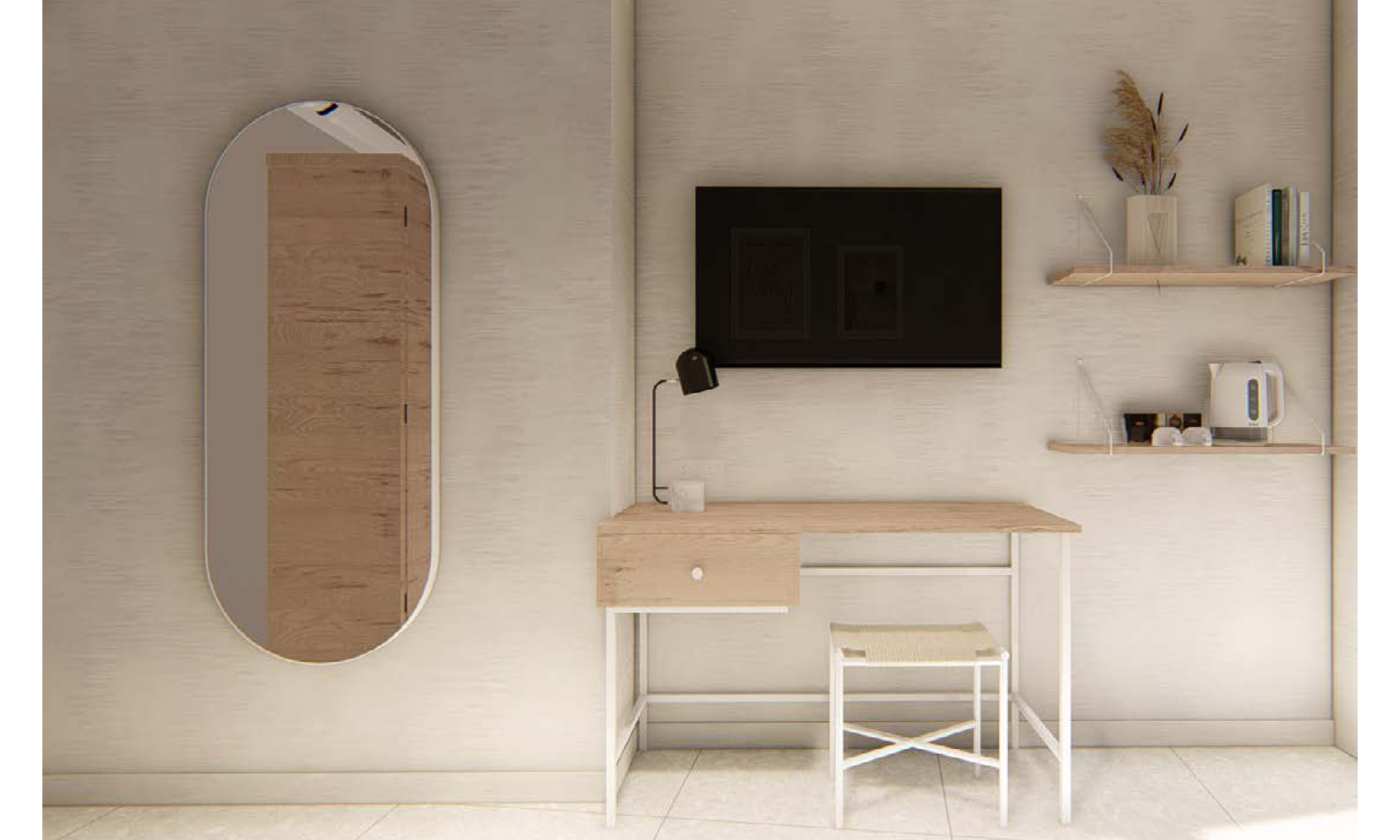 We produced all the elements such as fixed and loose furniture, accessories, wallpaper. Our oak-inspired design language brings a warm and welcoming ambiance, creating spacious and vibrant rooms that offer a perfect blend of comfort and style.